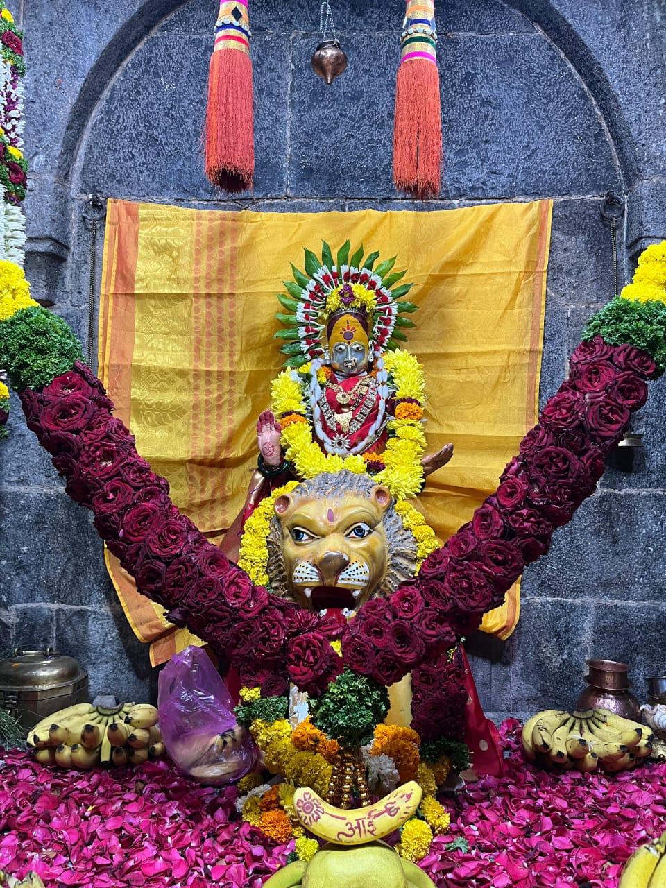 As per Hindu calendar, on Ashwin Shuddha pratipada (The first day of the bright half of the Ashwin month) till Vijayadashmi, this festival is very fervently celebrated every year. Every morning, Shodshopachar puja (16 step ritual) is performed while in the evening, devi is seen seated on different vahanas on each day. At night, devi’s Paduka and Mukhavata is placed in the palakhi.